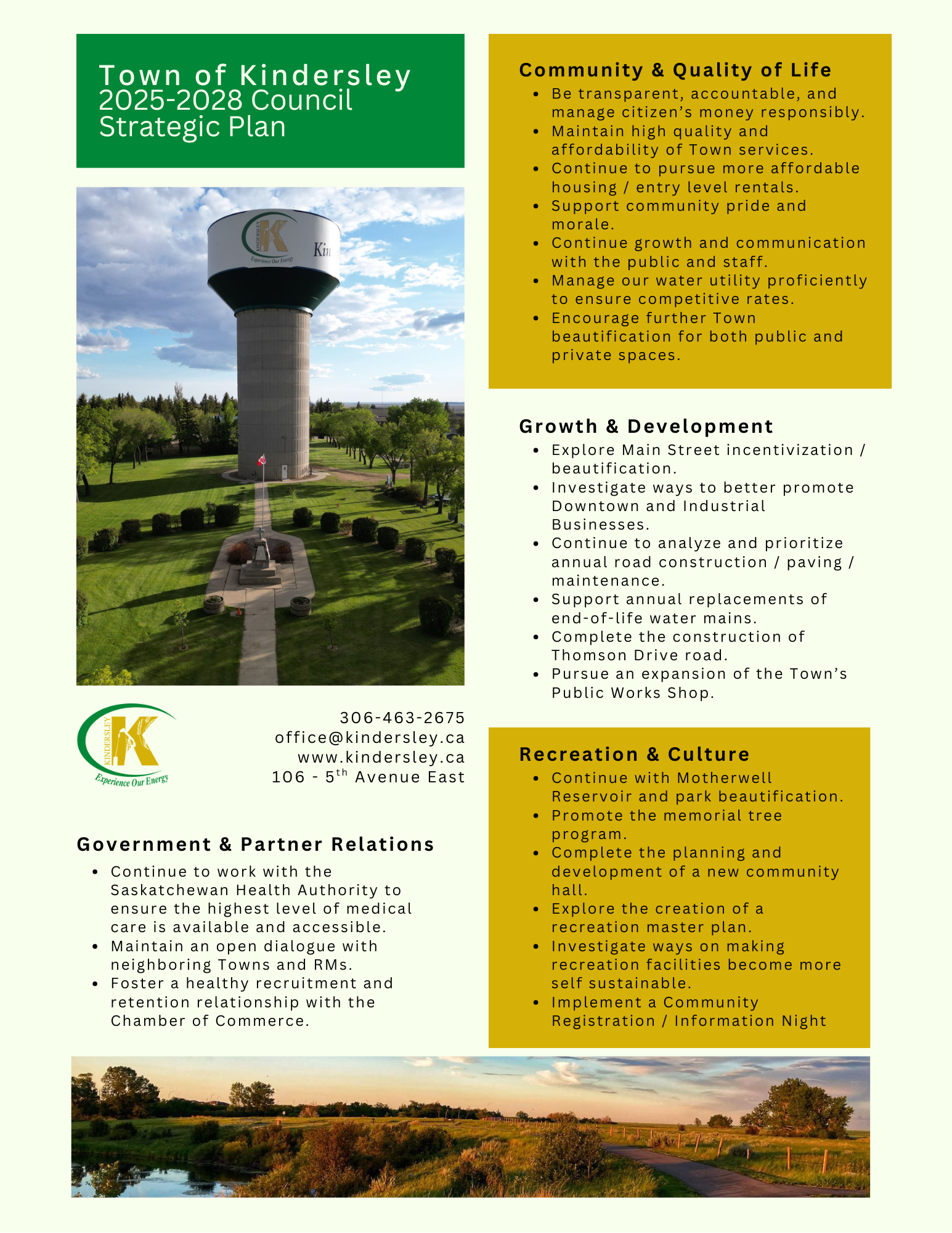 - Set out the planning goals for the Town of Kindersley.