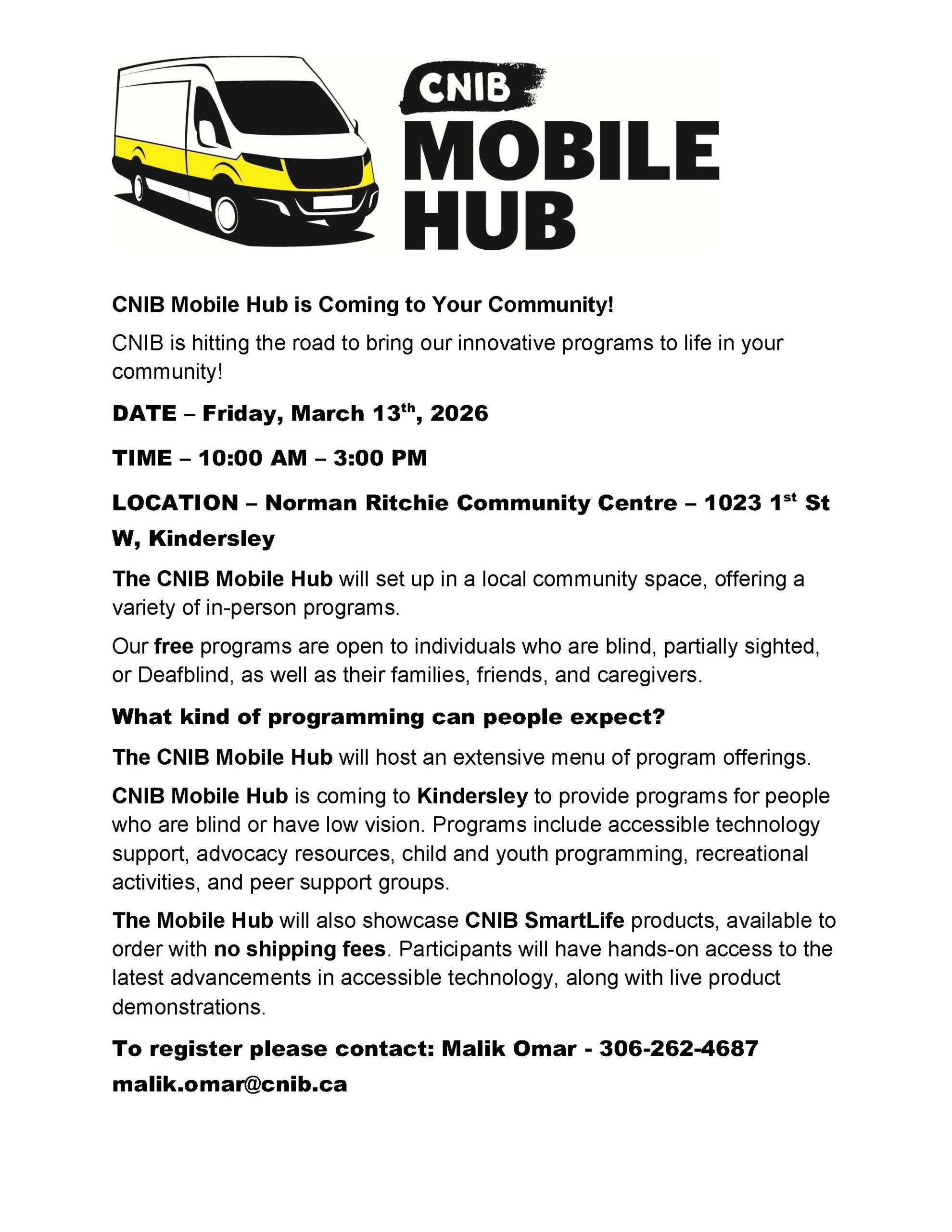 CNIB Mobile Hub Posting for our friends at CNIB! By Communications|2026-02-06T09:24:06-06:00February 6th, 2026|Categories: Community, News and Notices|